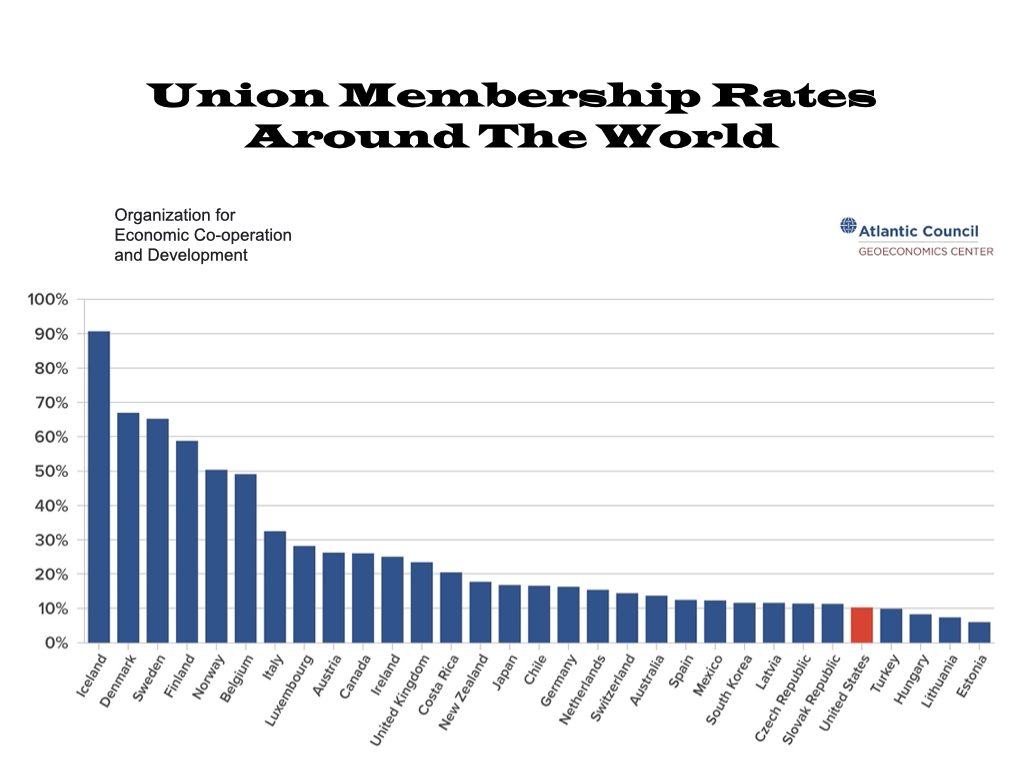 The U.S. ranking doesn’t seem to me to justify that much excitement over labor unions’ resurgence or standing in America.