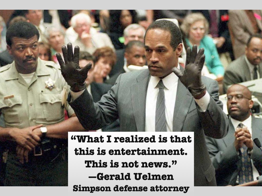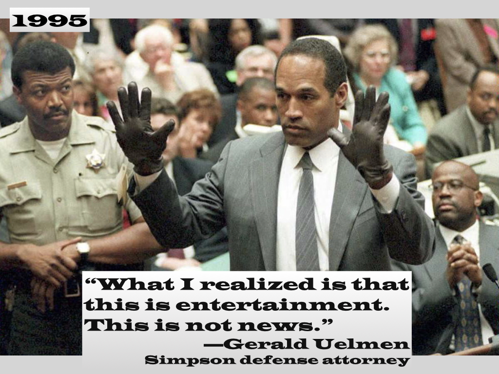 How did it happen? There were a number of reasons. One big one was the swallowing of the three formerly independent American television networks, along with their news divisions, by larger corporate entities in the 1980s. The famous quote by CBS’s founder William Paley, “You guys cover the news; I’ve got Jack Benny to make money for me,” no longer applied after that. Network news operations, once viewed as the prestigious company flagships and excused as financial loss leaders, were now expected to pay their own way and become profit-makers like any other space in their new homes.